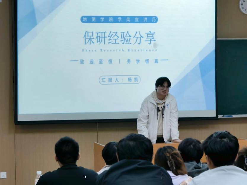 为落实立德树人根本任务,发挥榜样示范作用,10月27日,地测学院邀请9名获保研、国家奖学金及特等奖学金的优秀学子组成宣讲团,在天-J4、J7举办“朋辈星光”优良学风建设宣讲会。学院党委副书记彭科、辅导员苏玲、庄淑怡与全体大一新生参会。