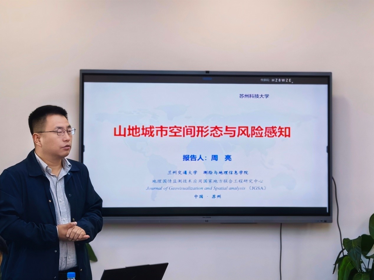 11月10日,兰州交通大学测绘与地理信息学院院长周亮教授应邀来访我院,并作题为《山地城市空间形态与风险感知》的学术报告。报告会在地测院308会议室举行,王永志副院长(主持工作)、陈德超副院长、教师代表及研究生30余人出席。