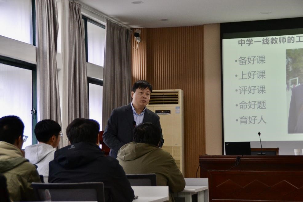 朱庆龙老师以其深厚的教学理论功底和一线教研的丰富经验,迅速吸引了全场学生的注意力。他指出,一节优秀的地理课,绝不仅仅是知识的简单传递,其灵魂在于教师独特教学理念的贯穿与引领。他强调,地理师范生作为未来的教师,应从学生时代起就有意识地培养和凝练自己的教学理念,并以此为核心进行课程的整体架构。朱老师还结合大量生动的教学案例,深入浅出地阐述了如何将“人地协调观”、“综合思维”、“区域认知”、“地理实践力”等核心素养融入课堂教学设计的每一个环节。他从教学目标的精准设定、教学情境的巧妙创设、学生活动的有效组织,到教学评价的多元设计,进行了系统而细致的讲解。朱老师特别指出,教学设计的过程本身就是一种重要的“成果”,鼓励同学们不仅要学会“设计课”,更要善于将优秀的设计转化为教学论文、案例、课件等物化成果,实现从实践到理论的升华,为未来的专业发展奠定坚实基础。