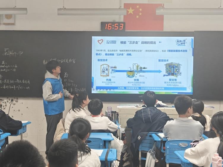 近日,地理科学与测绘工程学院星溯宣讲先锋队走进学府中学,举办了一场主题为“两弹一星进校园,爱国情怀植心田”的志愿宣讲活动。活动以多样化的互动形式,将“两弹一星”精神传递给青少年,旨在帮助同学们“扣好人生第一粒扣子”,树立远大理想,培养爱国情怀与社会责任感。