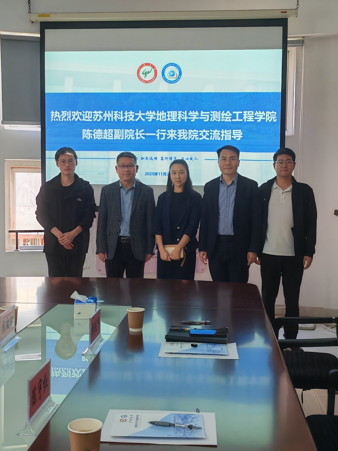 11月25日,地理科学与测绘工程学院副院长陈德超等赴广州大学地理科学与遥感学院调研。双方围绕学科建设与研究生教育、“十五五”规划等议题进行了深入交流。广州大学地理科学与遥感学院党委书记陈宇红、副院长杨现坤等参加座谈 。