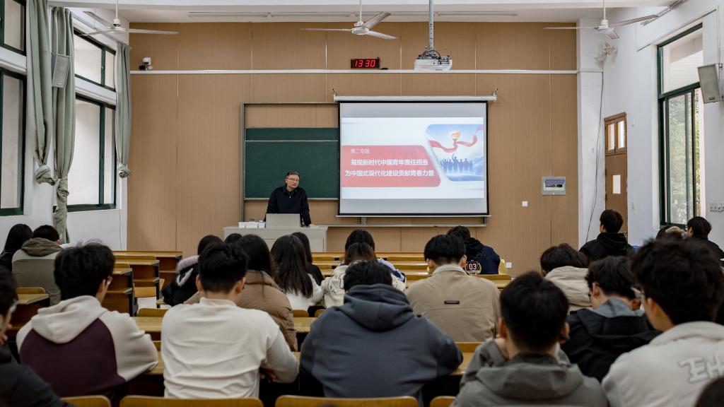 党委书记姚之彦、党委副书记彭科、副院长杨朝辉、副院长陈德超以《展现新时代中国青年责任担当为中国式现代化建设贡献青春力量》为主题,结合自身工作经历和理论研究成果,从新时代中国青年的历史方位、责任使命以及如何在中国式现代化建设中贡献青春力量等方面展开深入讲解。授课过程中,领导们系统梳理了中国式现代化的科学内涵、本质要求和重大意义,结合当前国内外发展形势,用详实的数据、鲜活的案例,阐述了新时代为青年成长成才提供的广阔舞台。他们强调,新时代中国青年生逢盛世、肩负重任,要坚定理想信念,树立远大志向,把个人理想融入国家和民族的事业之中;要锤炼过硬本领,珍惜大学时光,刻苦钻研专业知识,提升综合能力素养;要勇于担当作为,主动投身社会实践,在服务人民、奉献社会的过程中实现人生价值,为推进中国式现代化建设注入青春动能。
